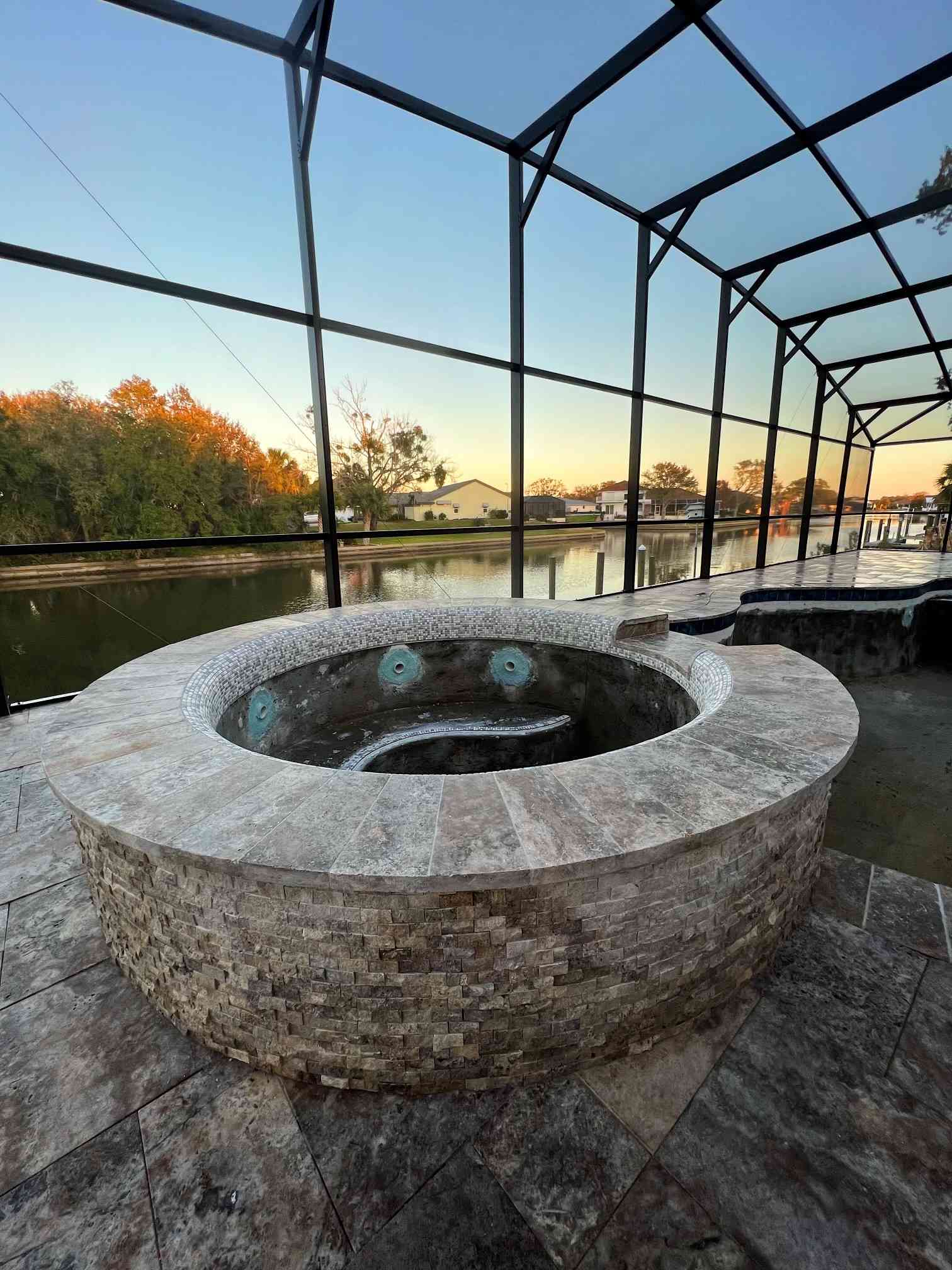 Here’s a closer look at the custom rolled edge spa. We are one of the only pool builders in our area to offer this finish. And the pics below you can also see the screen enclosure installation completed.